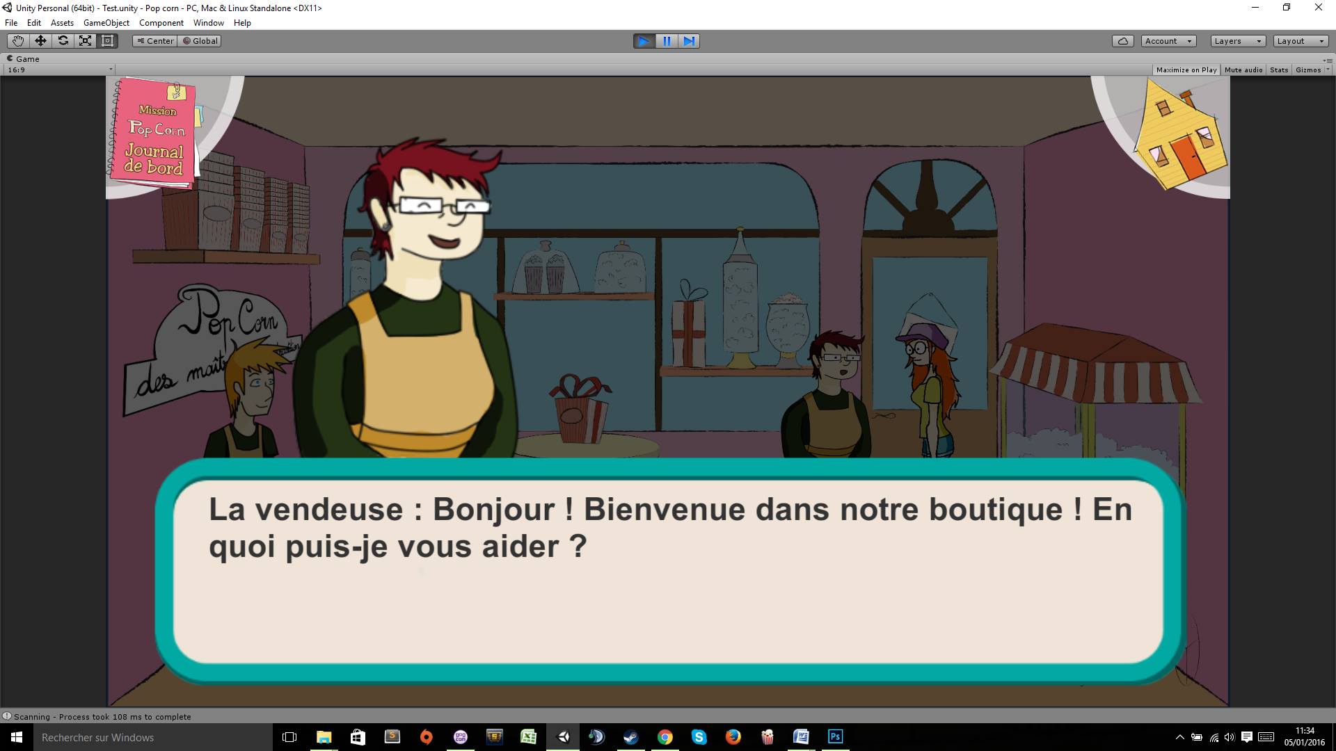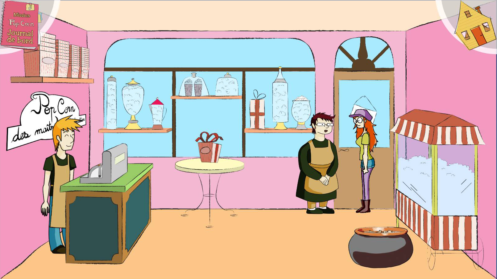 D'octobre 2015 à janvier 2016, j'ai travaillé sur le graphisme et Level Design d'un prototype de jeu (moteur Unity 3D) tiré du livre "Mission Pop-Corn", ouvrage de vulgarisation de la mercatique à destination des adolescents.